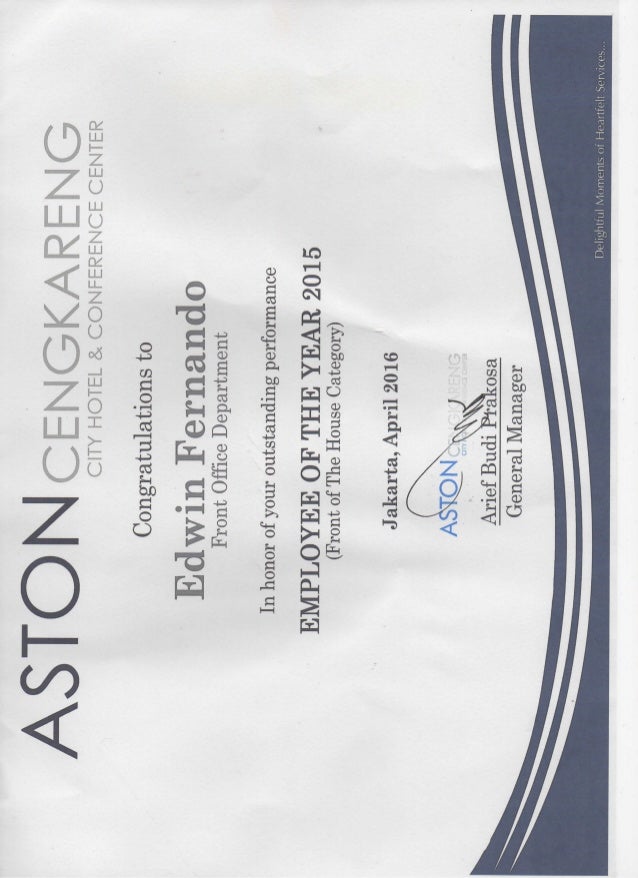 Employee of the year certificate.